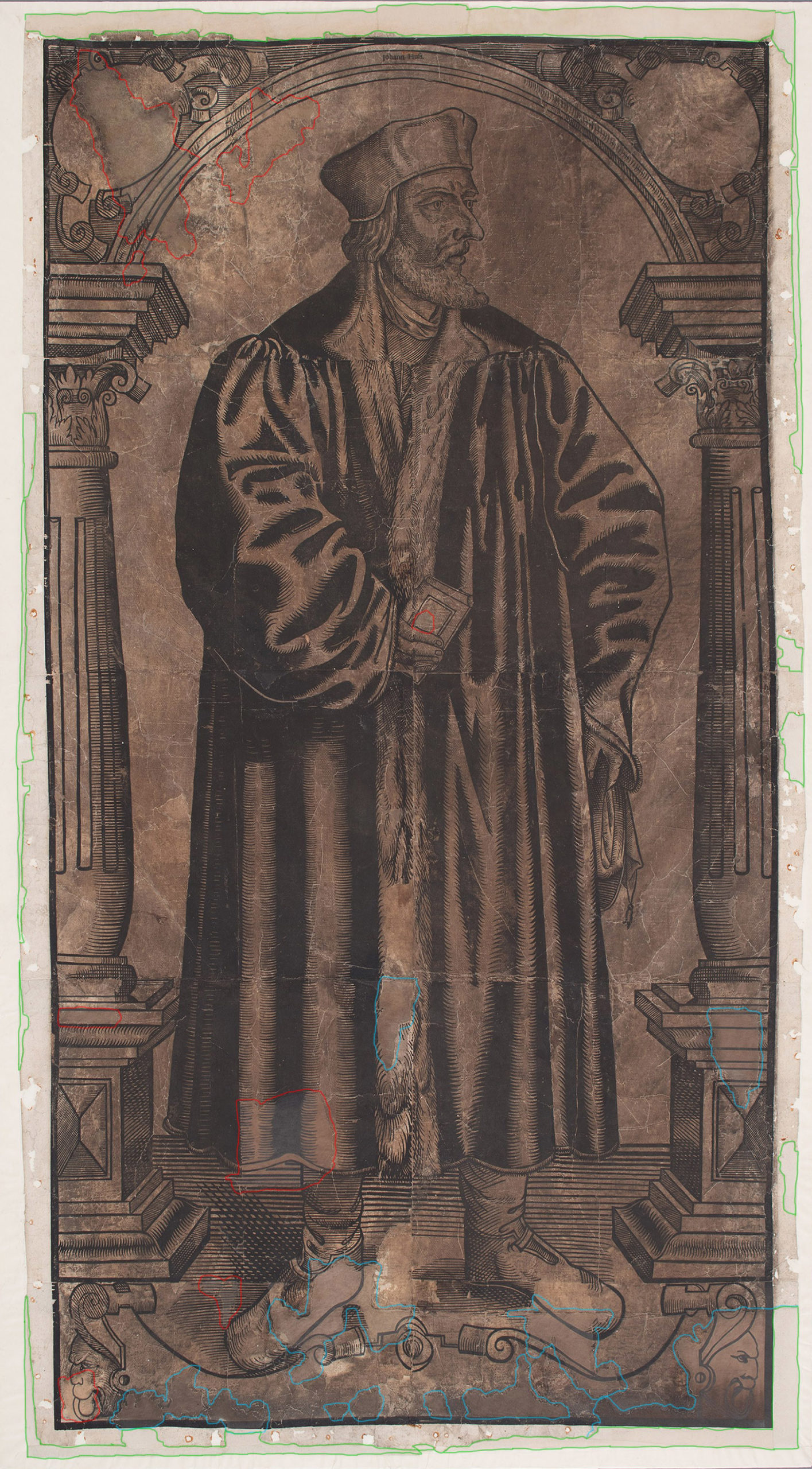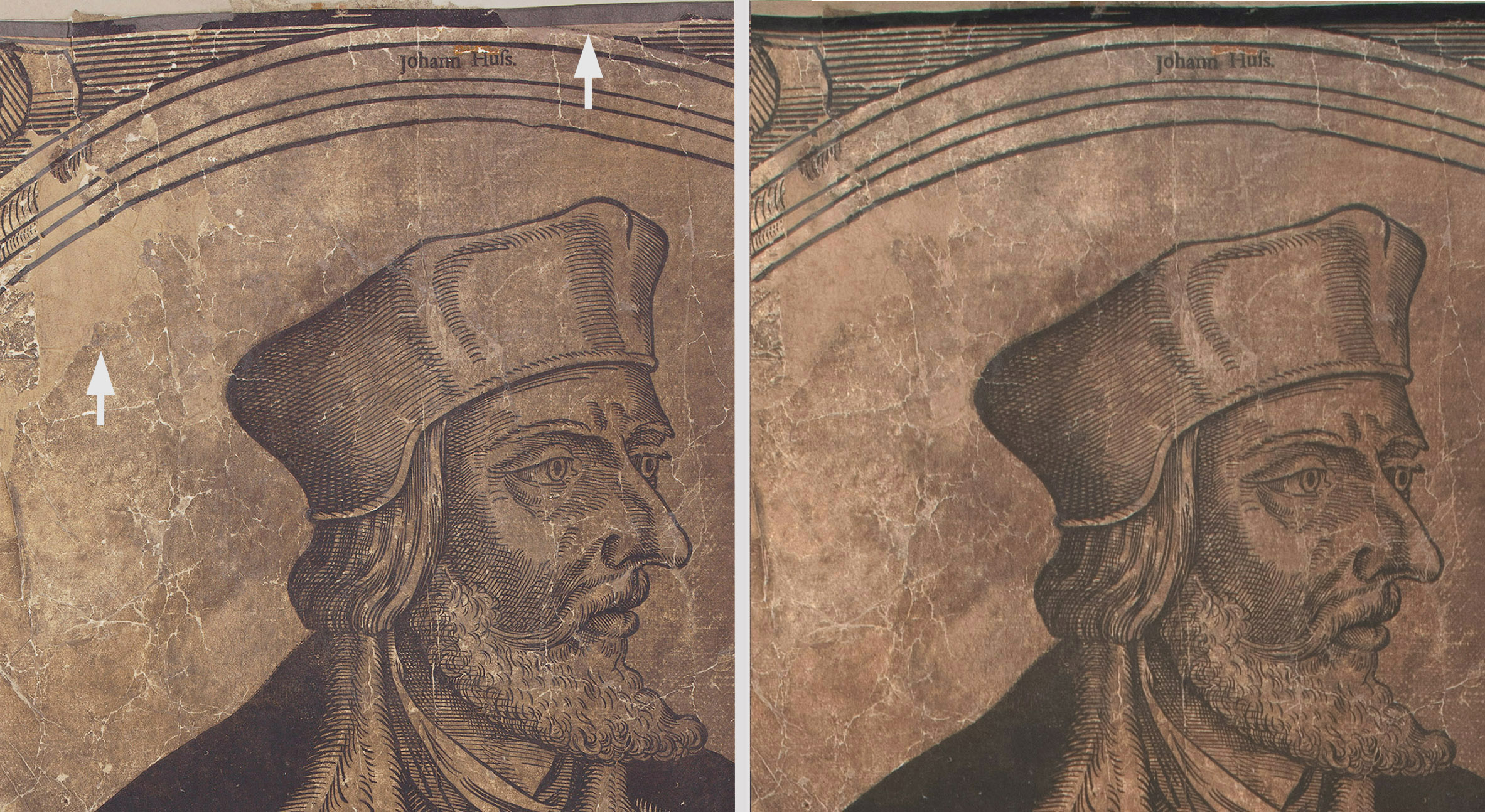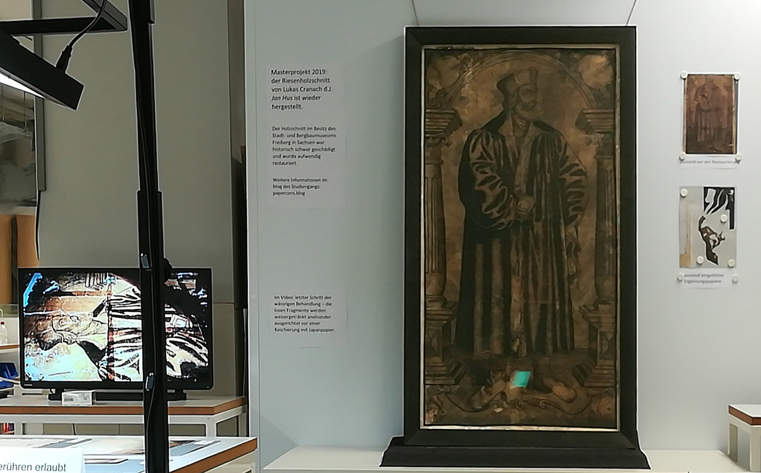 Der Beitrag ist in Zusammenarbeit mit Leonie Müller entstanden in Zusammenhang mit ihrer Masterarbeit, „Restaurierung eines Riesenholzschnitts Jan Hus aus der Werkstatt von Lukas Cranach im Besitz des Stadt- und Bergbaumuseums Freiberg“, Staatliche Akademie Stuttgart, 2019.