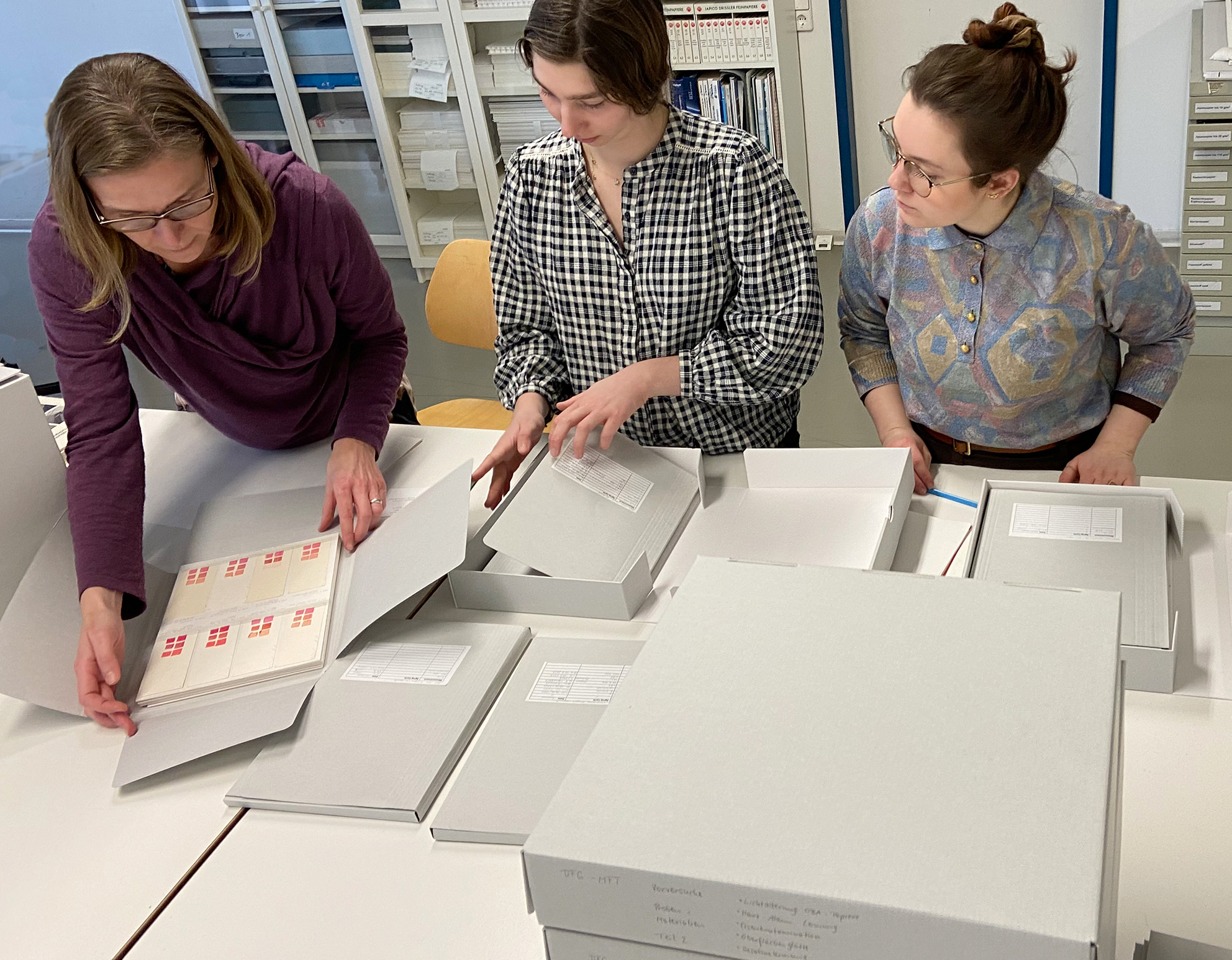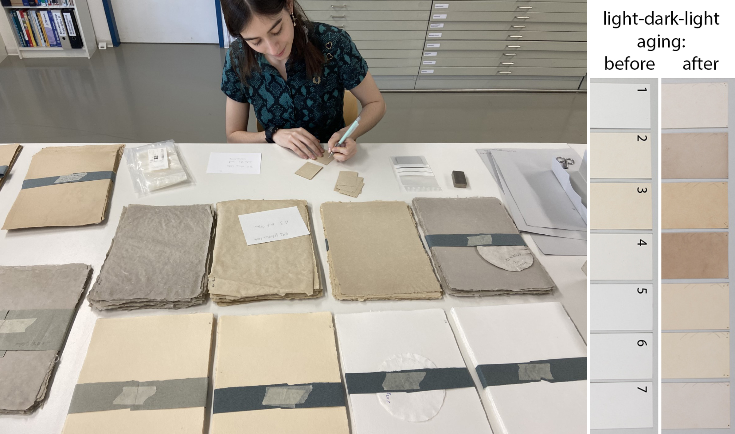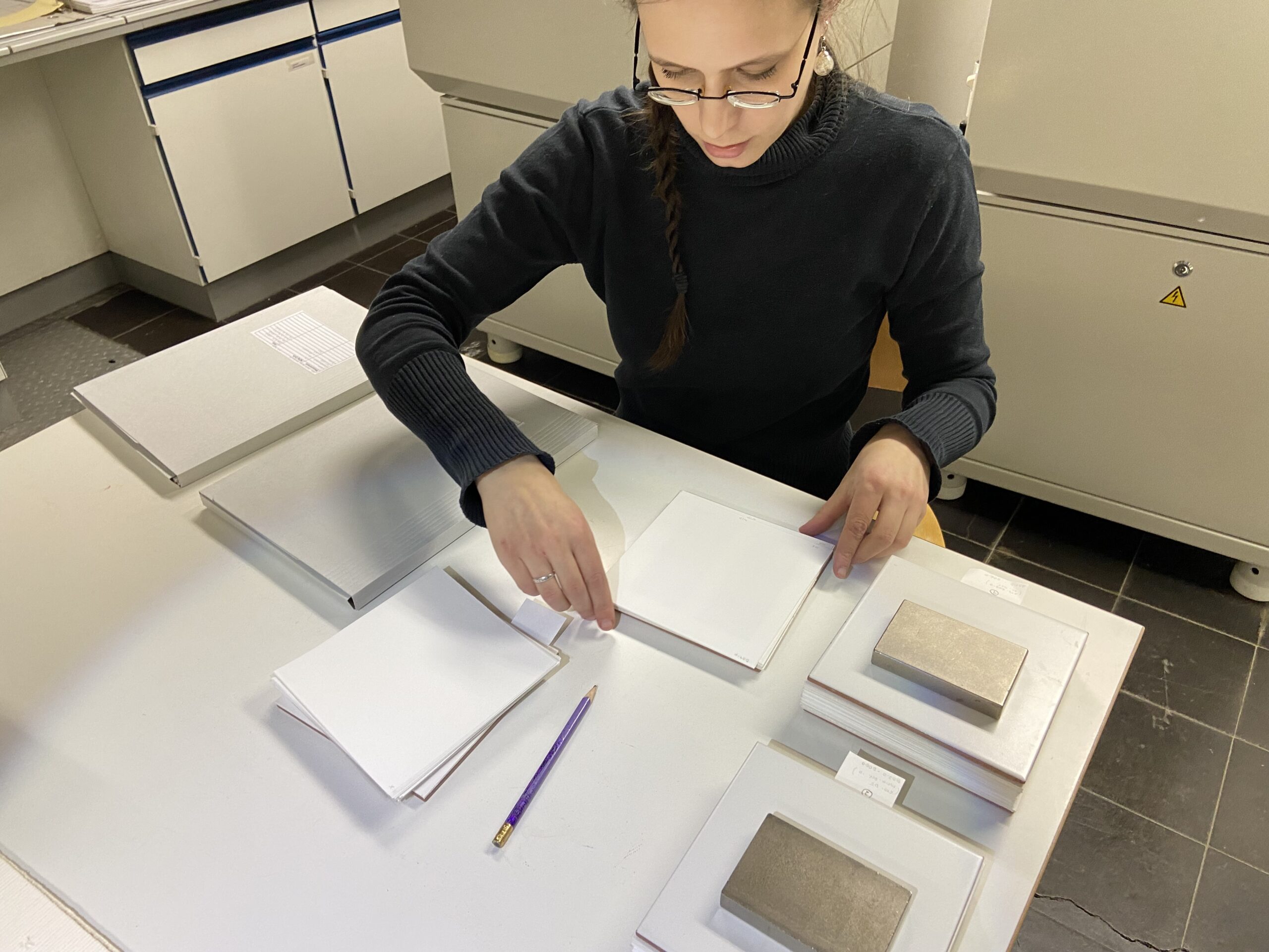 At Stuttgart, Marie Kern is preparing paper samples for accelerated aging.