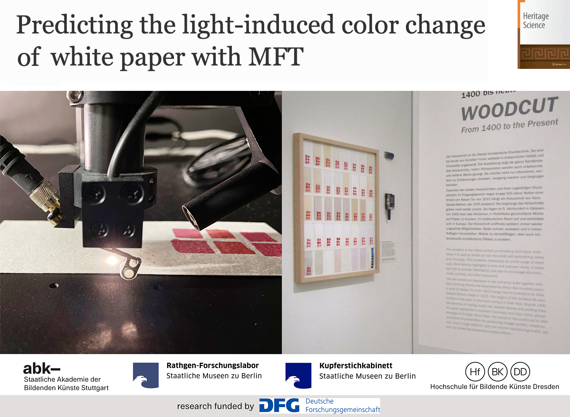 June 12, 2024: The peer-reviewed journal Heritage Science has launched the Collection „Predicting the light-induced color change of white paper with MFT„. This is where we will submit the results of our collaborative research project.